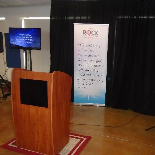 In the summer of 2015, we took the leap and relocated to South Florida to start sharing the vision of the church. The Rock Fellowship Church officially launched in September 2016, initially meeting in the cafeteria of Mater Lakes Academy in northwest Miami-Dade. Later, we moved into a movie theater in Miami Lakes until the COVID-19 shutdown in 2020. During the pandemic, we conducted virtual services and Bible studies for over a year. Finally, in mid-2021, we were able to resume in-person services, holding an afternoon service in one of the buildings of a local church in Miami Lakes.
